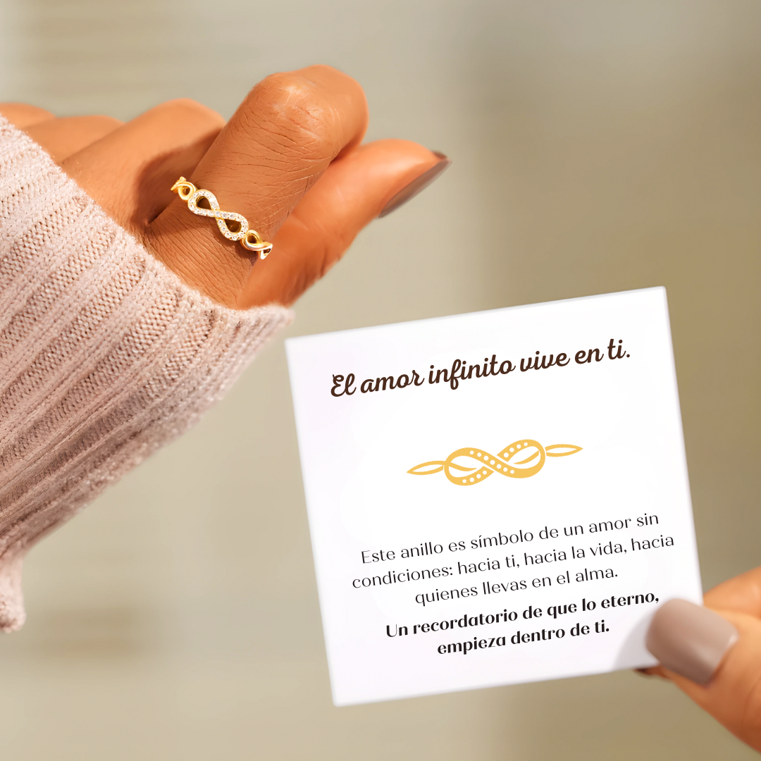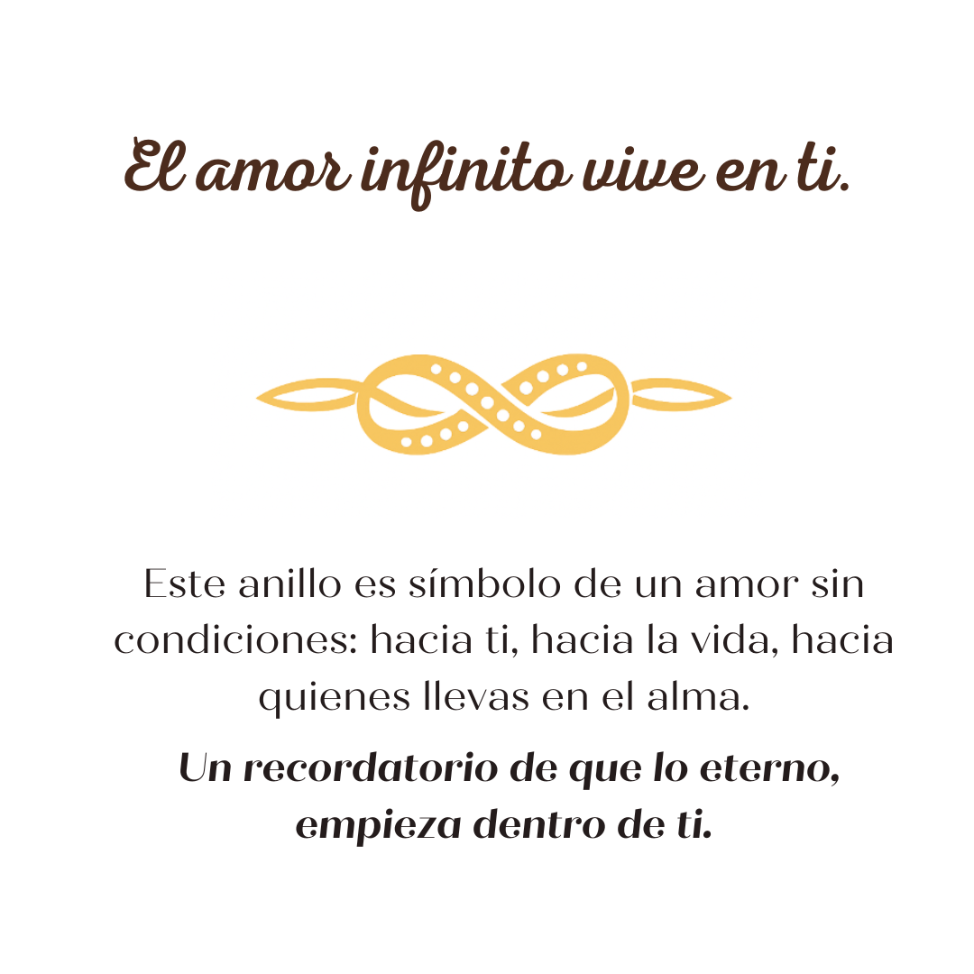 El Anillo Amor Infinito representa ese lazo que nunca se rompe, ese amor que trasciende el tiempo, la distancia y las palabras.