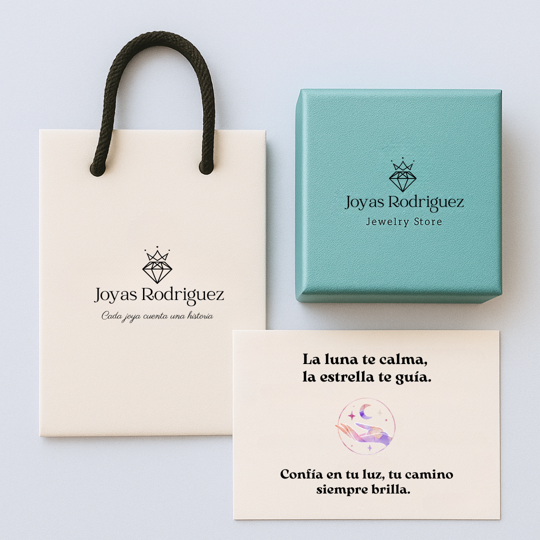 Cada joya llegará con su propia tarjeta con mensaje y su propia cajita. Empaquetadas y listas para regalar.
