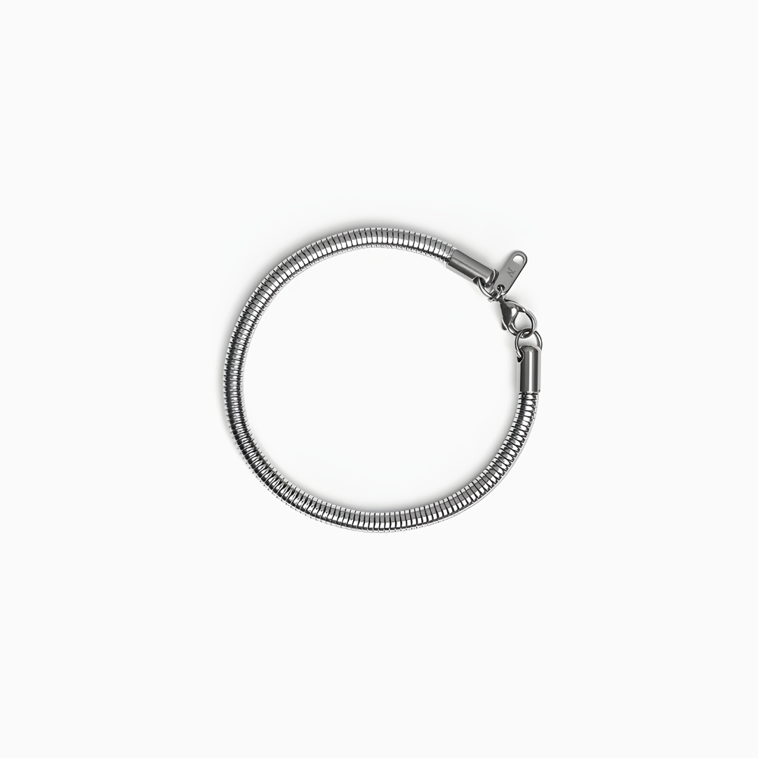 Con su elegante cadena de plata y su forma única, esta pulsera combina audacia y sofisticación, convirtiéndose en el complemento perfecto para cualquier look.